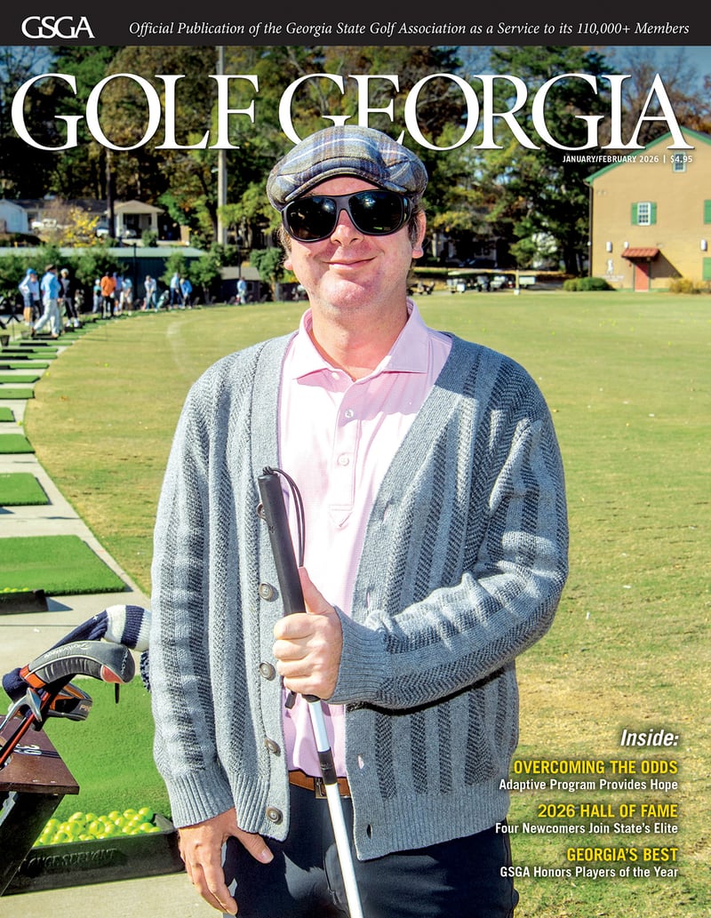 The January/February 2026 edition cover story features Aaron King, a GSGA Adaptive Golf Program participant, and his journey to finding golf as an outlet after a disease left him legally blind.
